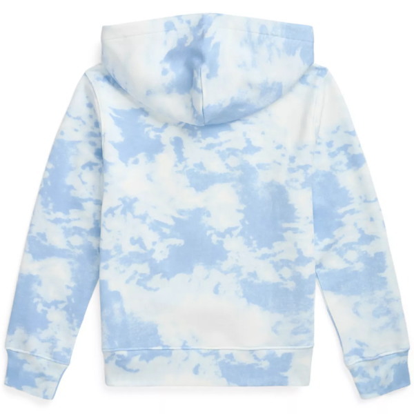 大人気のPoloベアをあしらったプルオーバーパーカー。絞り染め加工が施された一点もののデザインで注目度抜群!。肌触りが良く保温力に優れた裏起毛仕立て。大人も着ていただけます。XL=メンズM相当が目安です。