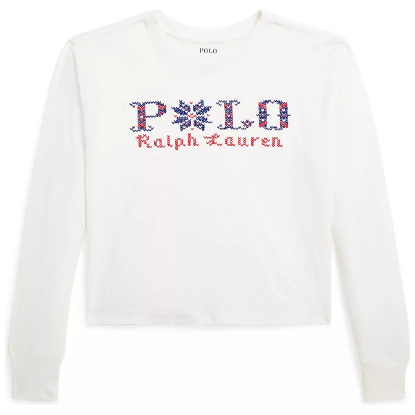 刺繍ロゴを施したキュートなガールズTシャツ。トレンドのボックス型シルエット。大人も着ていただけます。XL=レディースM相当が目安です。